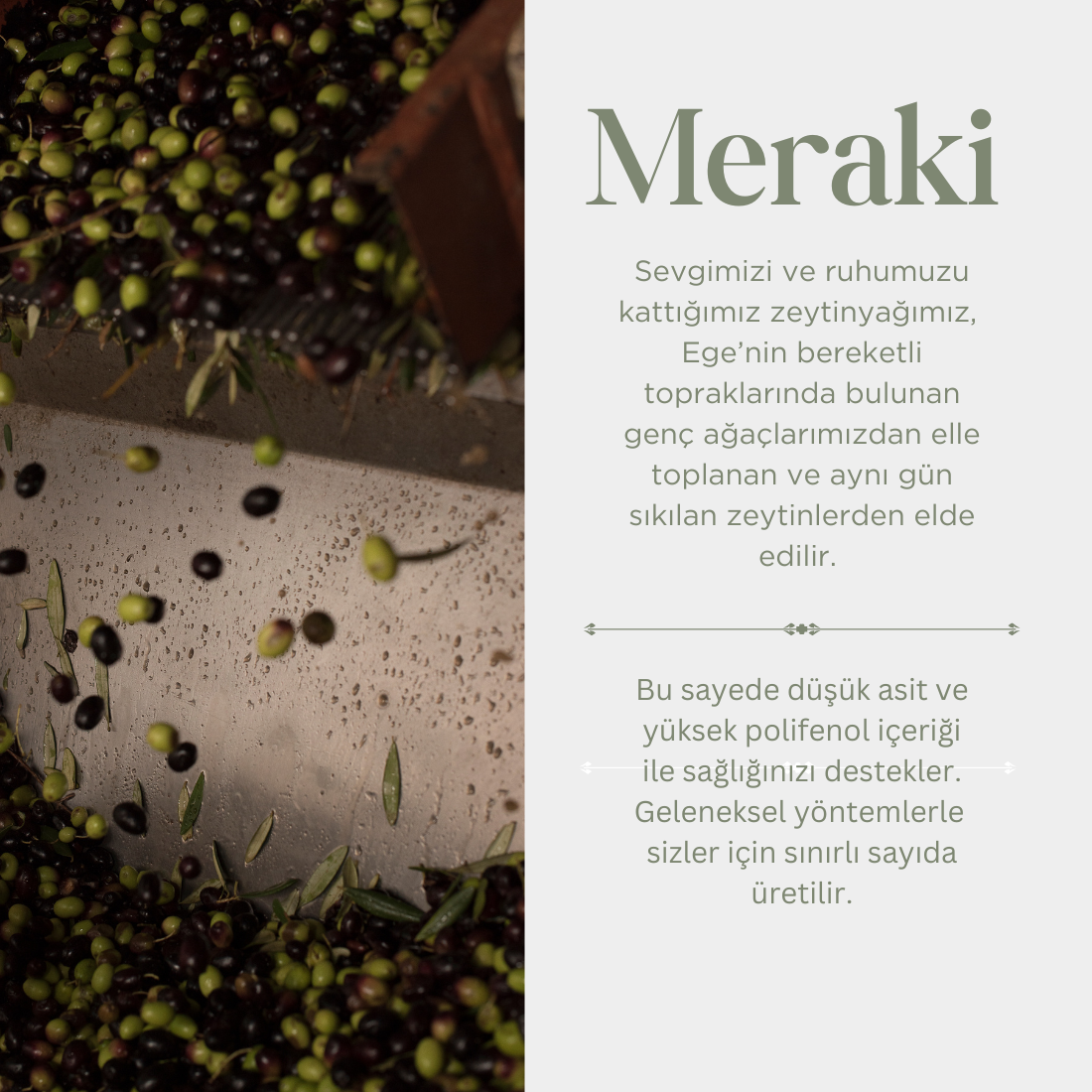 Meraki Yüksek Polifenollü Yeni Hasat Soğuk Sıkım Natürel Sızma Zeytinyağı 1 Lt.